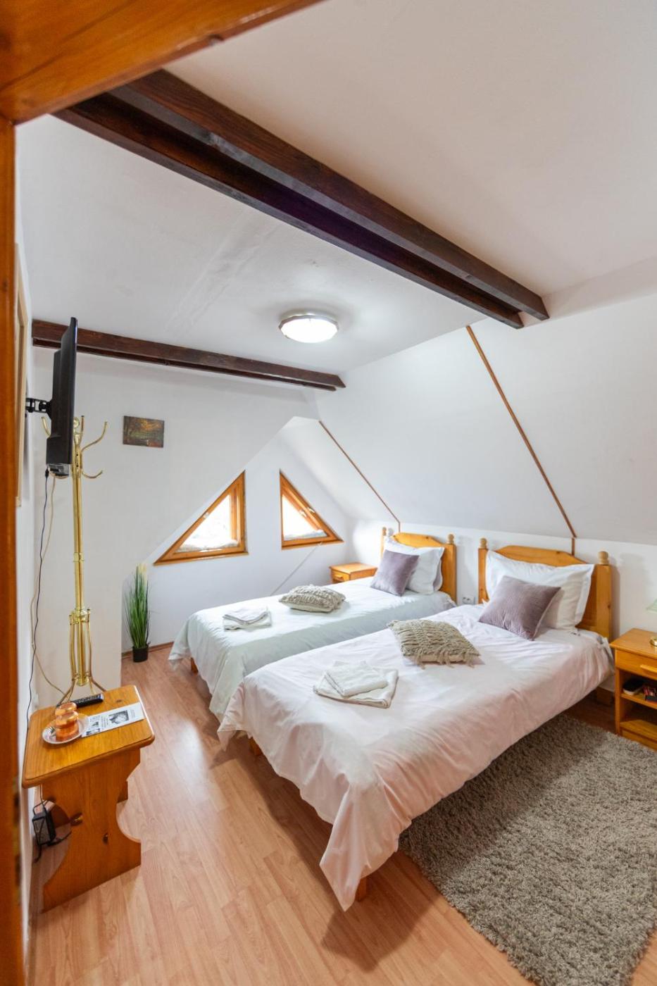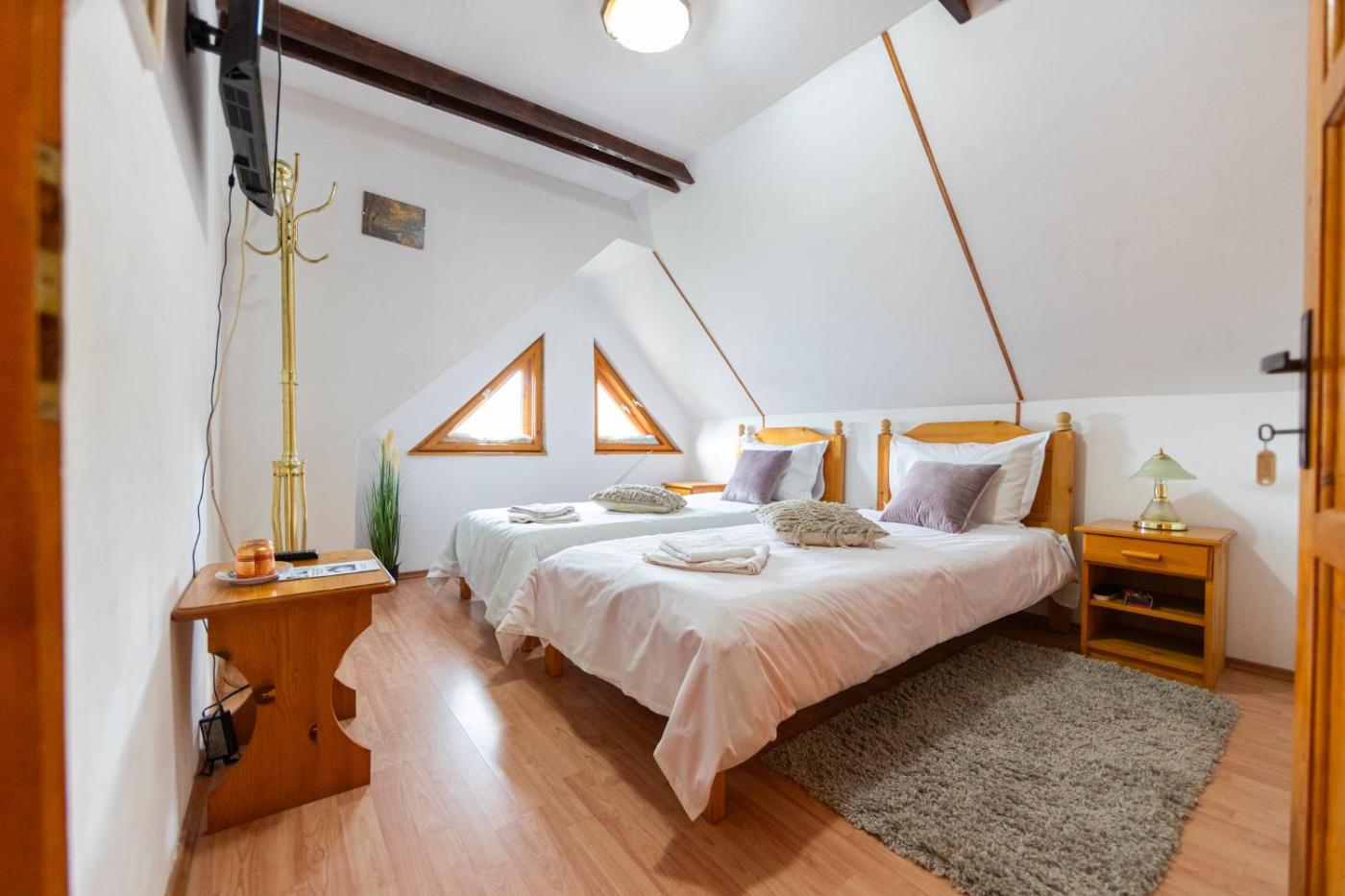Budget Double Room. The double room features parquet floors and a tiled floor, as well as a private bathroom boasting a shower. Guests will find a refrigerator, kitchenware and a microwave in the kitchen. The double room also features a barbecue. The double room offers a flat-screen TV with cable channels, a private entrance, a tea and coffee maker, a dining area as well as garden views. The unit has 2 beds.