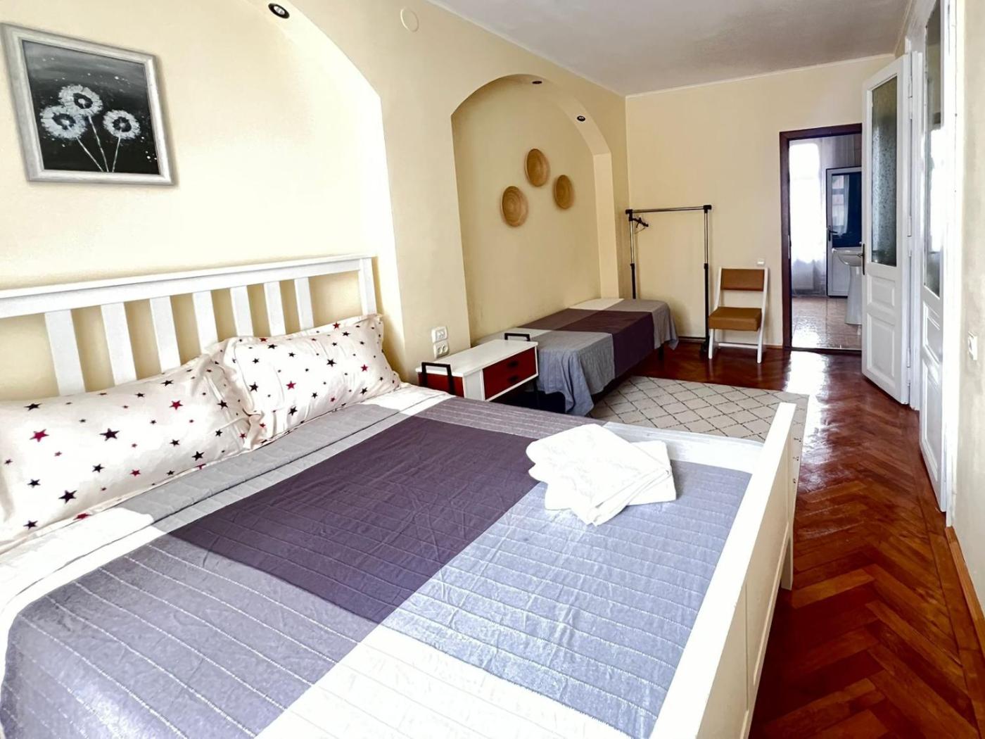 Two-Bedroom Apartment. This spacious apartment comes with 1 living room, 2 separate bedrooms and 2 bathrooms with a walk-in shower and a bidet. Guests can make meals in the kitchen that features a stovetop, a refrigerator, kitchenware and an oven. The apartment features a private entrance, soundproof walls, a tea and coffee maker, a flat-screen TV with cable channels, as well as mountain views. The unit has 5 beds.