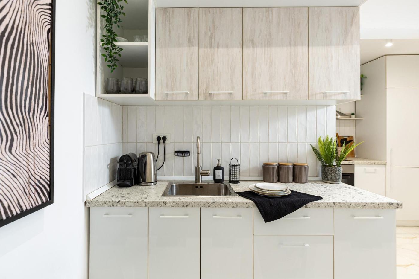 Two-Bedroom Apartment. This air-conditioned apartment is comprised of 1 living room, 2 separate bedrooms and 1 bathroom with a hairdryer. Guests can make meals in the fully equipped kitchen that features a stovetop, a refrigerator and an oven. Featuring a balcony, this apartment also offers a washing machine, a tea and coffee maker and a flat-screen TV with cable channels. The unit offers 3 beds.