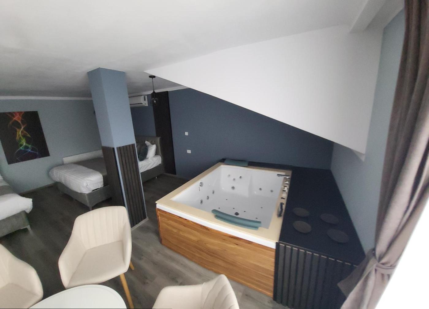 Superior Family Room. The hot tub and spa bath are the special features of this family room. This air-conditioned family room includes a flat-screen TV with cable channels, a private bathroom as well as a terrace with a quiet street view. The unit offers 2 beds.