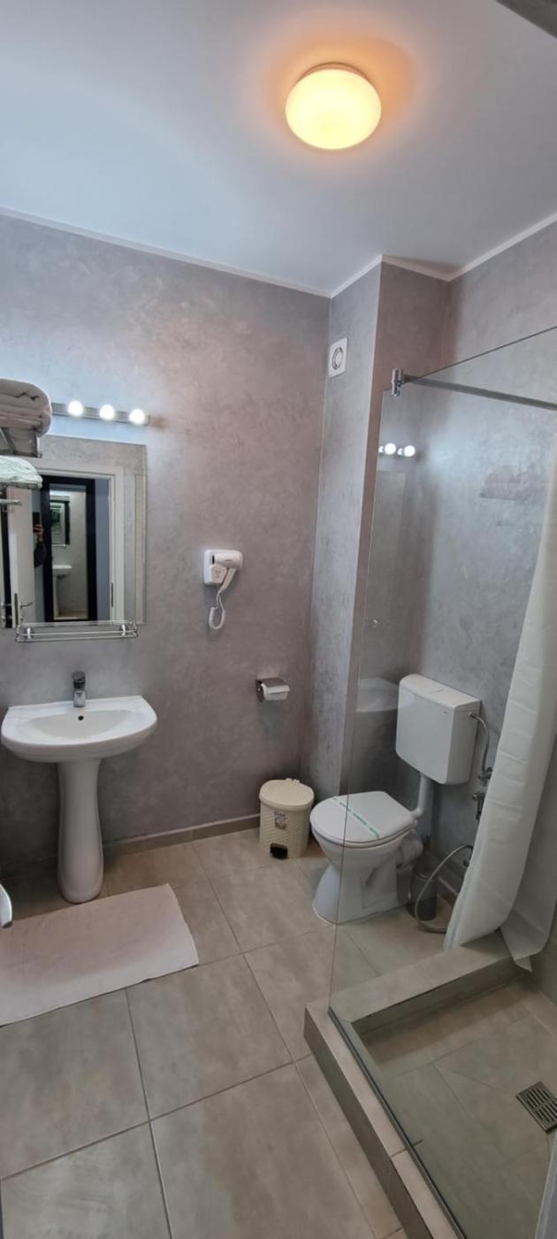 Comfort Triple Room with Shower. The triple room has a private bathroom fitted with a shower and a hairdryer. The air-conditioned triple room offers a flat-screen TV with cable channels, soundproof walls, a wardrobe, a tiled floor as well as ancourtyard view. The unit has 2 beds. ;